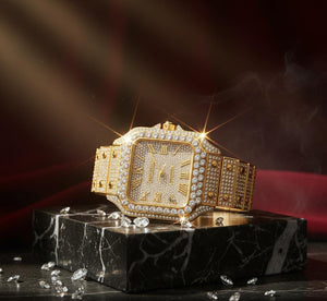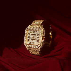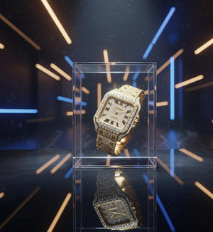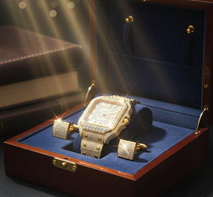 Inspired by the legendary Cartier design, this watch embodies bold geometry and lavish refinement. Its polished stainless steel case, luminous moissanite-encrusted dial, and seamless bracelet create an aura of prestige and grace.